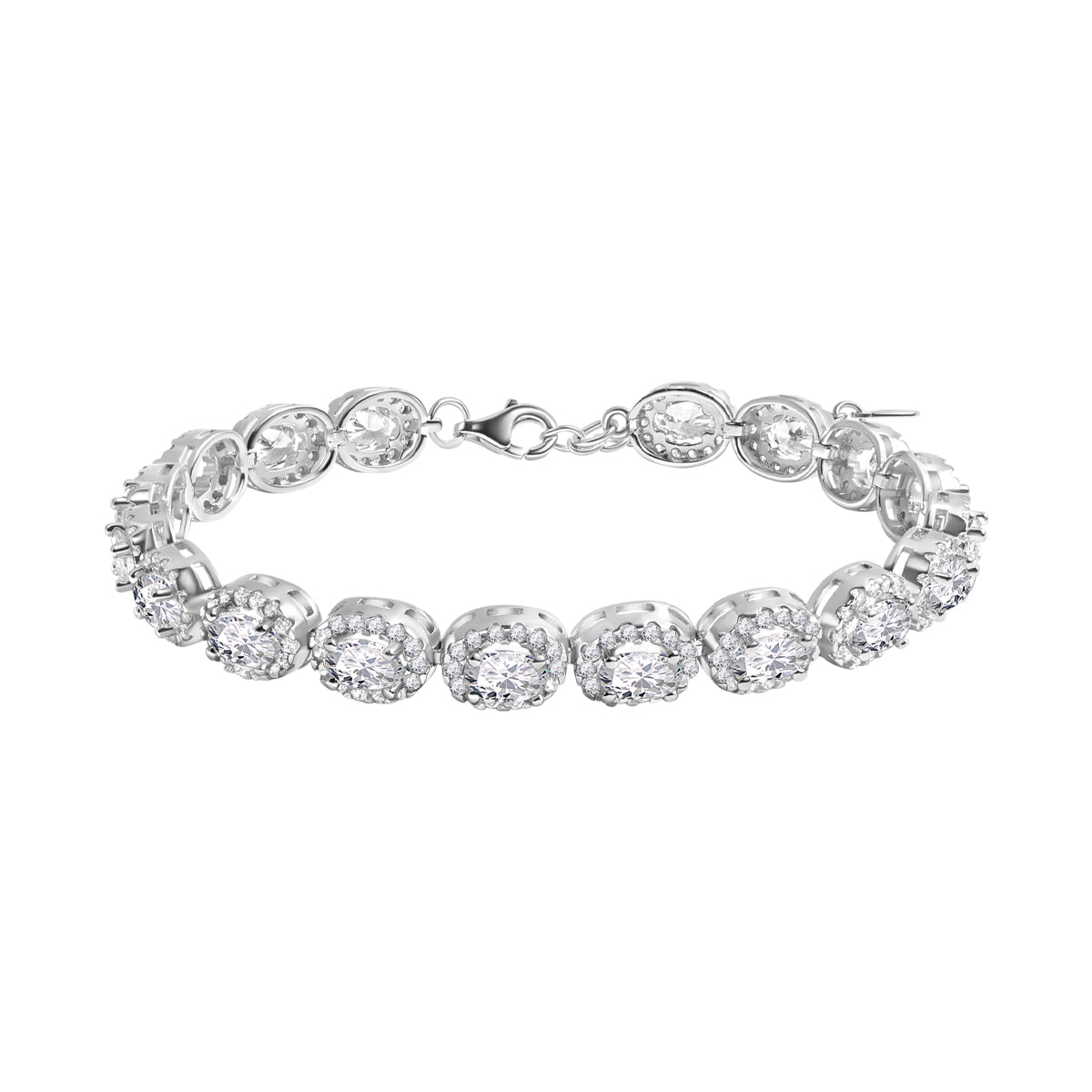 Bransoletka wykonana z najwyższej próby srebra rodowanego i cyrkonii. Wzór to połączone ze sobą elementy w kształcie litery V, każdy z trzema cyrkoniami.. Bransoletka "lejąca", miękko układa się wokół ręki. Cyrkonie bardzo błyszczące. Bransoletka efektowna, lśni blaskiem cyrkonii.
