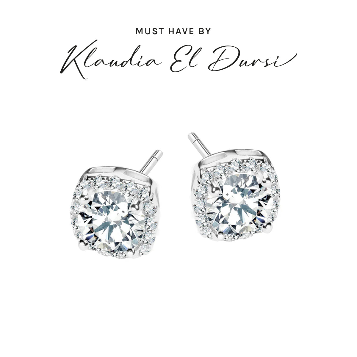 Wyjątkowe kolczyki wykonane z najwyższej próby srebra rodowanego 0,925. Ich design opiera się na klasycznej, kwadratowej karmazycji: centralną cyrkonię o szlifie brylantowym otacza wianuszek mniejszych kamieni. Dzięki krystalicznej barwie cyrkonii, całość pięknie odbija światło, zapewniając niesamowity blask. Idealne na wyjście i na co dzień.
