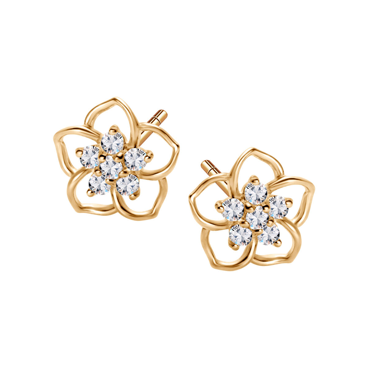 Kolczyki skomponowane ze złota próby 585 oraz lśniących cyrkonii. Ich ażurowe płatki, z delikatnie falującą linią, tworzą subtelną formę. Centralny element zdobią cyrkonie w krystalicznym odcieniu. Subtelne i pełne wdzięku, dyskretnie odbijają światło, będąc idealnym dopełnieniem i podkreśleniem kobiecego blasku.
