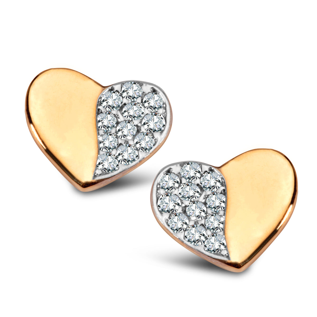 Kolczyki wykonane z żółtego złota próby 0,333 i cyrkonii. Serduszko płaskie, pełne. Część powierzchni ozdobiona cyrkoniami, część złota, gładka. Linia podziału "miękka", lekko falująca. Serduszko przymocowane do sztyftu. Kolczyki pełne wdzięku.