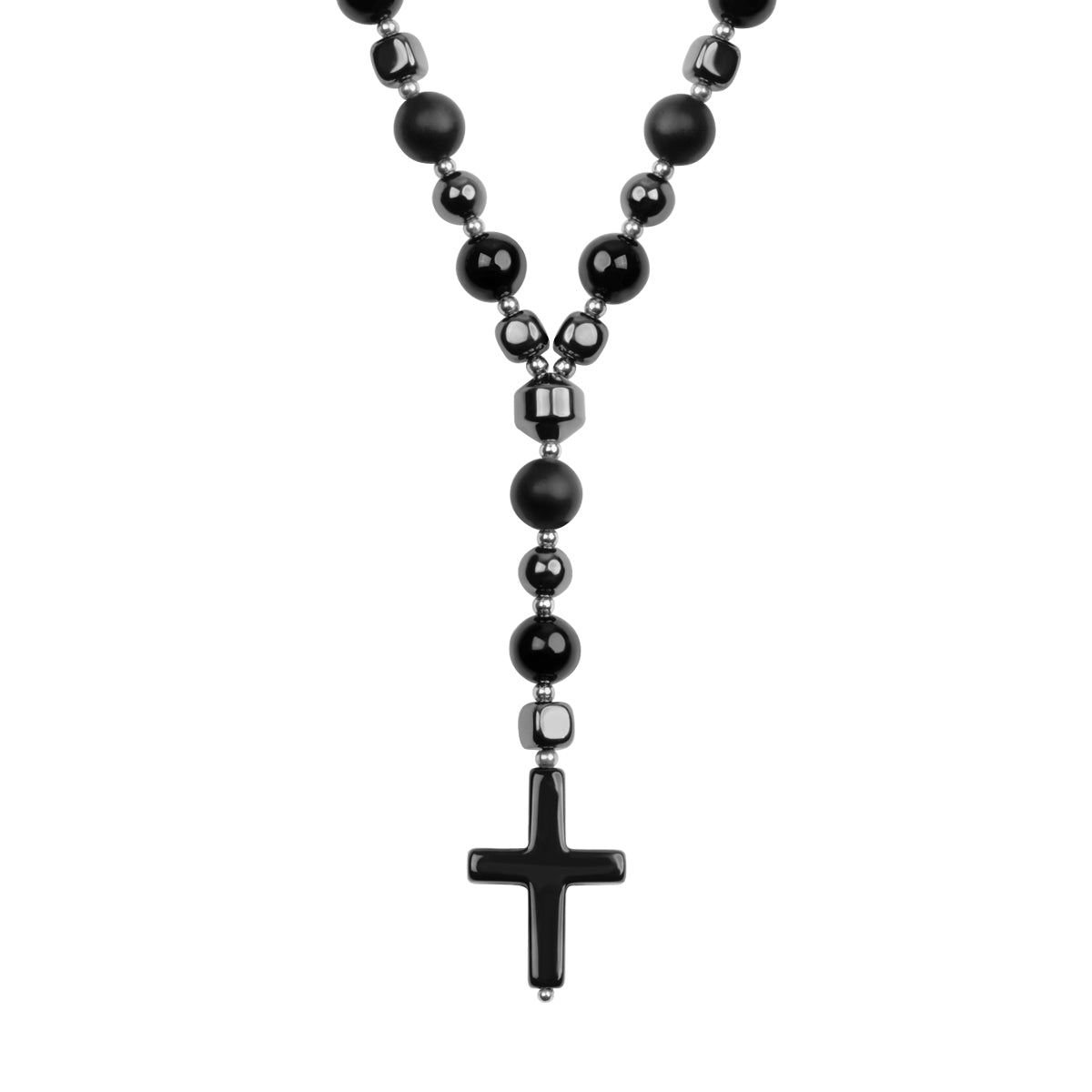 Kule o średnicach 8 i 2,5 mm. Kostki o boku 5 mm. Naszyjnik bez zapięcia: wkłady "przez głowę".