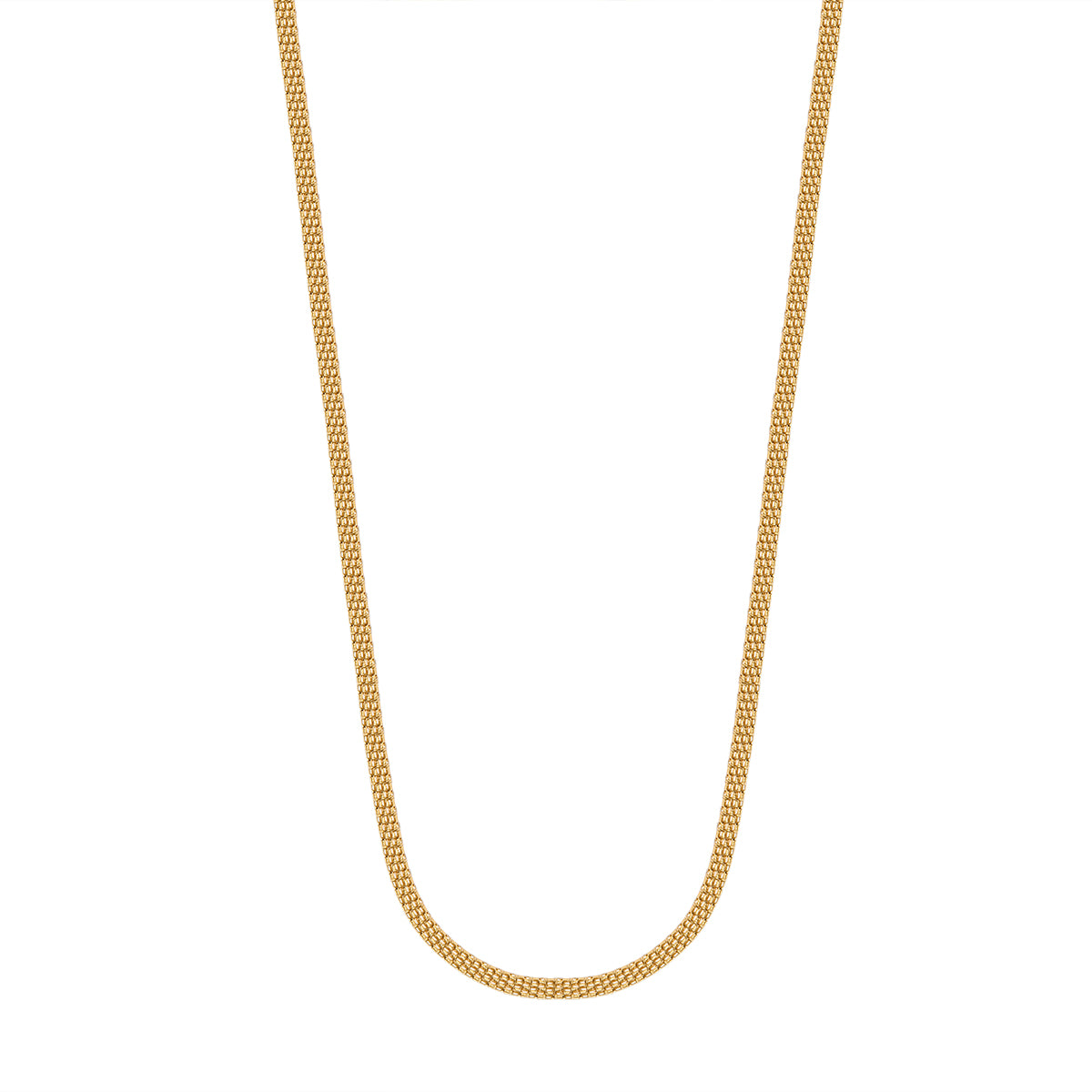 Naszyjnik ze srebra pozłacanego próby 0,925 wyróżnia się ażurowym, gęstym splotem, który pozostaje niezwykle plastyczny i „miękki” w dotyku. Specjalna technika szlifowania wydobywa z niego głęboki, złoty blask, który przyciąga spojrzenia. Idealny wybór dla kobiet szukających biżuterii uniwersalnej – od biurowej elegancji po wielkie wyjścia.