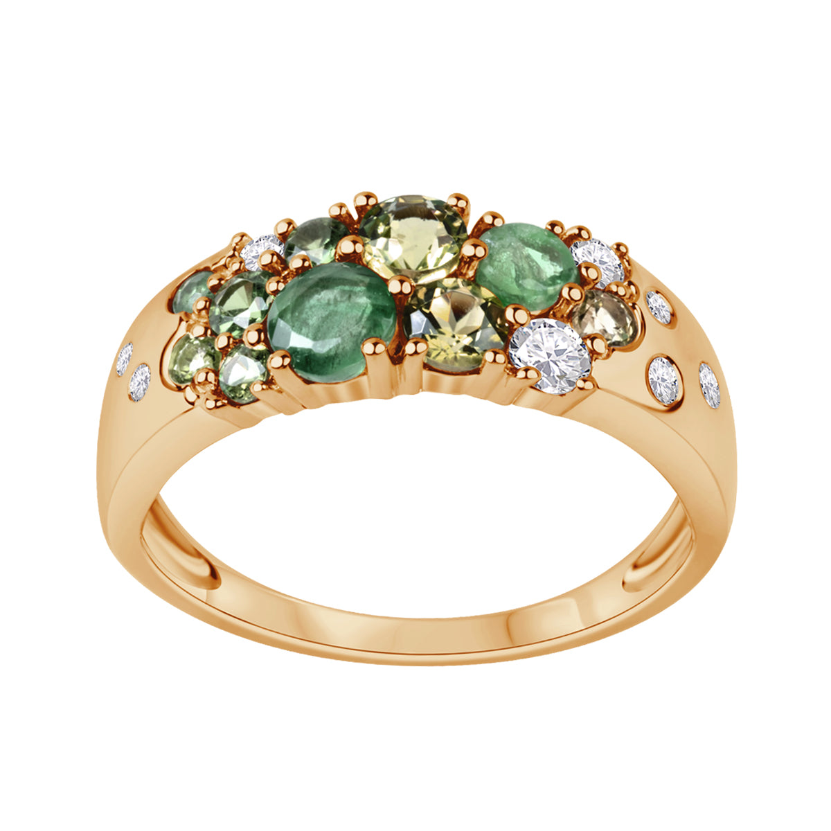 Pierścionek wykonany ze złota próby 0,585 i szafirów. Front obrączki ozdobiony siedmioma naturalnymi szafirami. Masa kamieni 0,25 ct. Autentyczność potwierdzona certyfikatem Verona. Pomiędzy szafirami złote ozdoby o kształcie "V". Powierzchnia obrączki pomiędzy kamieniami i ozdobami oksydowana. Piękny, oryginalny wzór.