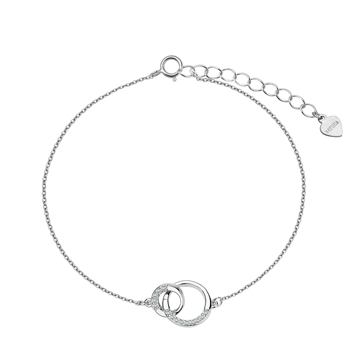 Kółka o średnicach 10 i 7 mm. Szerokość łańcuszka ok. 1 mm, długość bransoletki regulowana 16+2 cm.