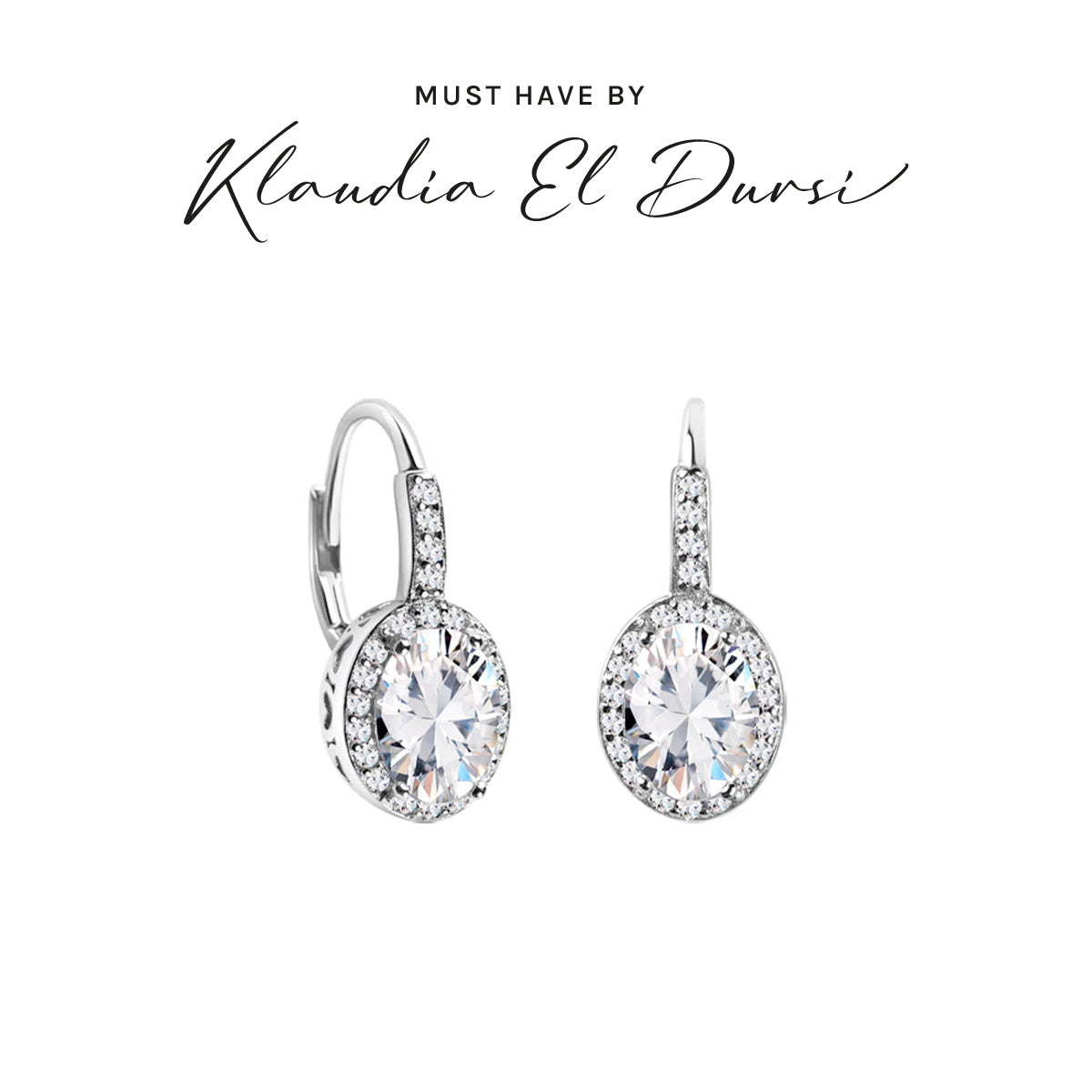 Piękne kolczyki w stylu karmazycja to kwintesencja elegancji. Wykonane z rodowanego srebra próby 925, lśnią dzięki bogato zdobionemu wzorowi. Centralna, owalna cyrkonia otoczona lśniącym wianuszkiem drobniejszych kamieni tworzy zachwycającą kompozycję. Bigle angielskie, ozdobione dodatkowo cyrkoniami.