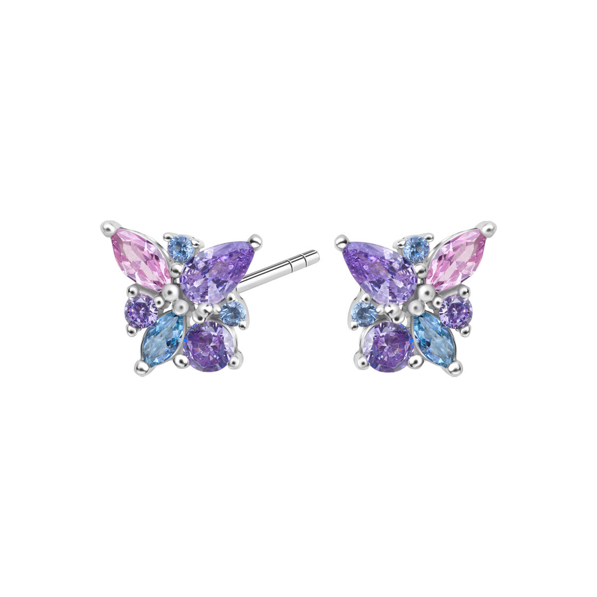 Kolczyki z kolekcji Tajemniczy Ogród by Verona. Uroczy motyw motyla, wysadzany pastelowymi cyrkoniami w odcieniach różu, błękitu i fioletu. Wykonane z rodowanego srebra próby 925. Idealne, aby dodać lekkości i koloru każdej stylizacji.