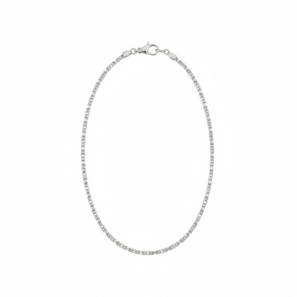Łańcuszek o splocie królewskim, wykonany ze srebra rodowanego pr. 925. Splot królewski oraz kwadratowy przekrój tworzy idealny balans między surowym designem a ponadczasową elegancją. Dzięki uniwersalnej estetyce, stanowi doskonały dodatek do każdej garderoby. To wyrazisty akcent, który podkreśli styl zarówno kobiety, jak i mężczyzny.