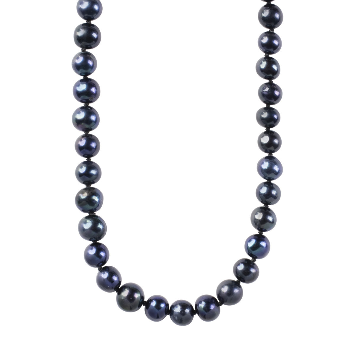 Naszyjnik wykonany z czarnych pereł i srebra rodowanego próby 0,925. Perły hodowlane, słodkowodne. Ich autentyczność potwierdzona certyfikatem Verona. Kształt pereł okrągły, niejednolity, podkreśla ich naturalność. Tonacja czarna z połyskiem i nutą grafitową. Zapięcie dekoracyjne w kształcie srebrnej kuliki. Naszyjnik elegancki, klasyczny.