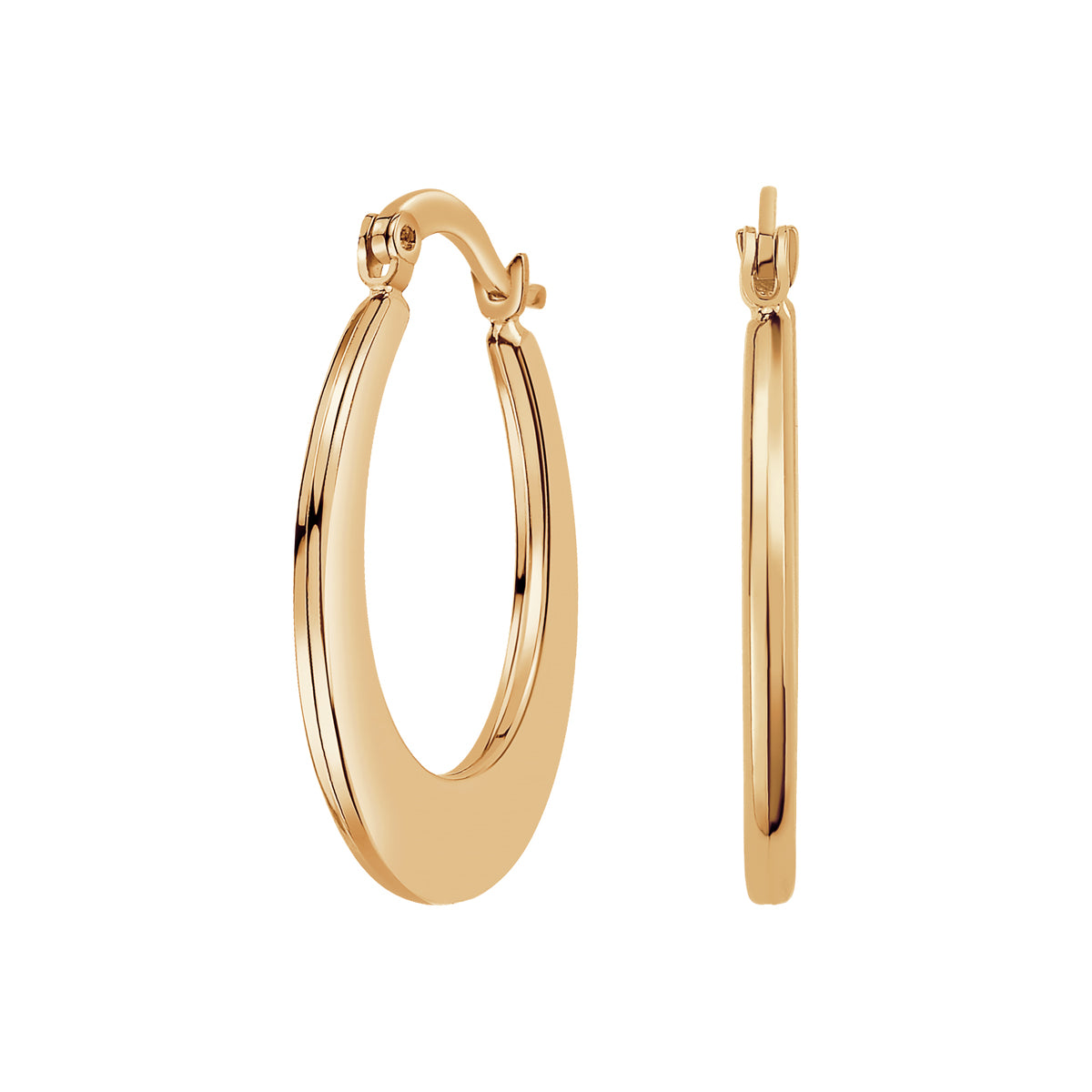 Kolczyki wykonane z żółtego złota próby 333. Owalne koło o zmiennej grubości, subtelnie rozszerza się ku dołowi, nadając całości nowoczesnego charakteru. Gładka, polerowana powierzchnia pięknie odbija światło, a lekka, pusta w środku konstrukcja zapewnia komfort noszenia. Połączenie klasycznej elegancji z minimalistycznym designem.