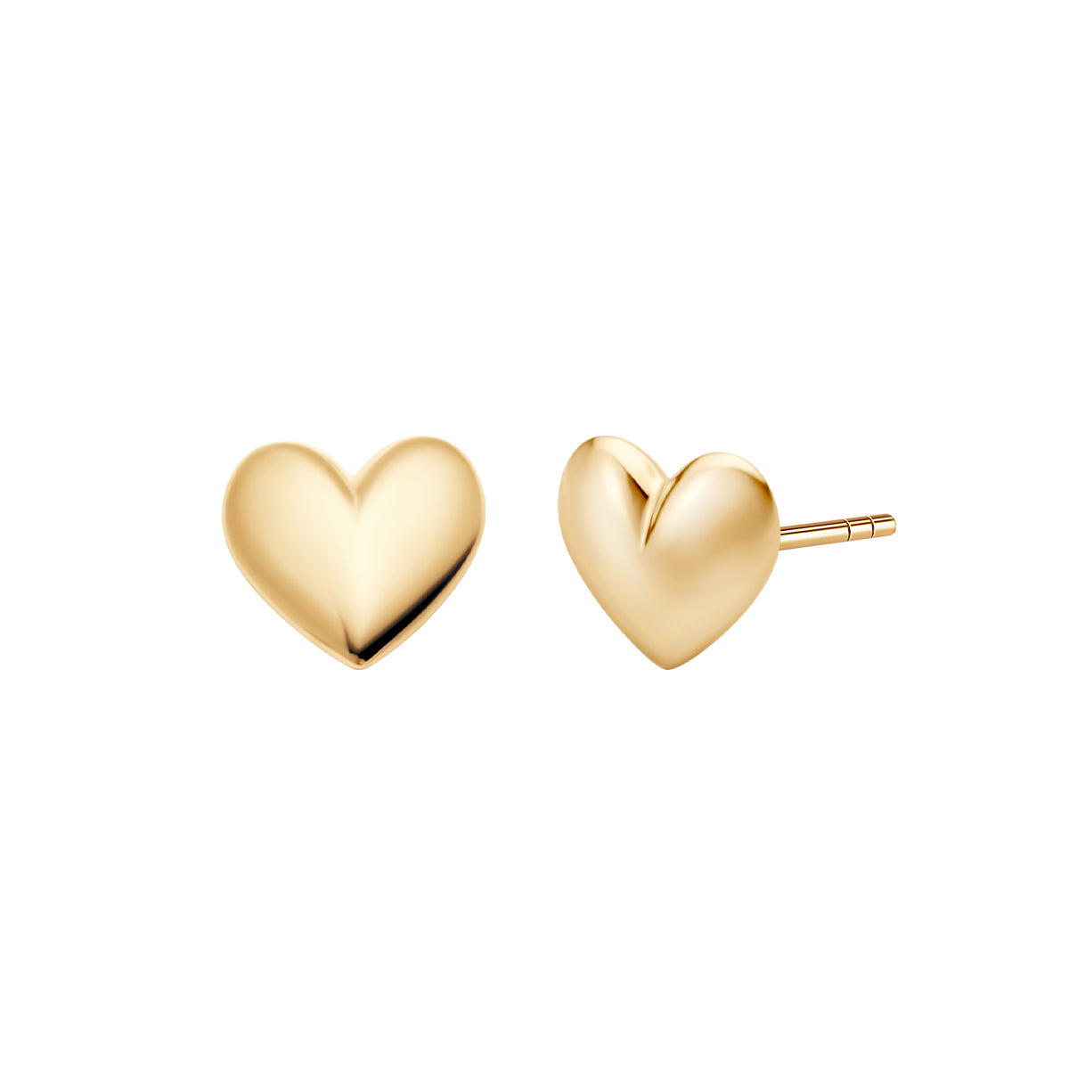 Kolczyki-serca wykonane ze złota próby 333. Ich przestrzenny, gładki wzór został wypolerowany, by pięknie lśnić i przyciągać wzrok.