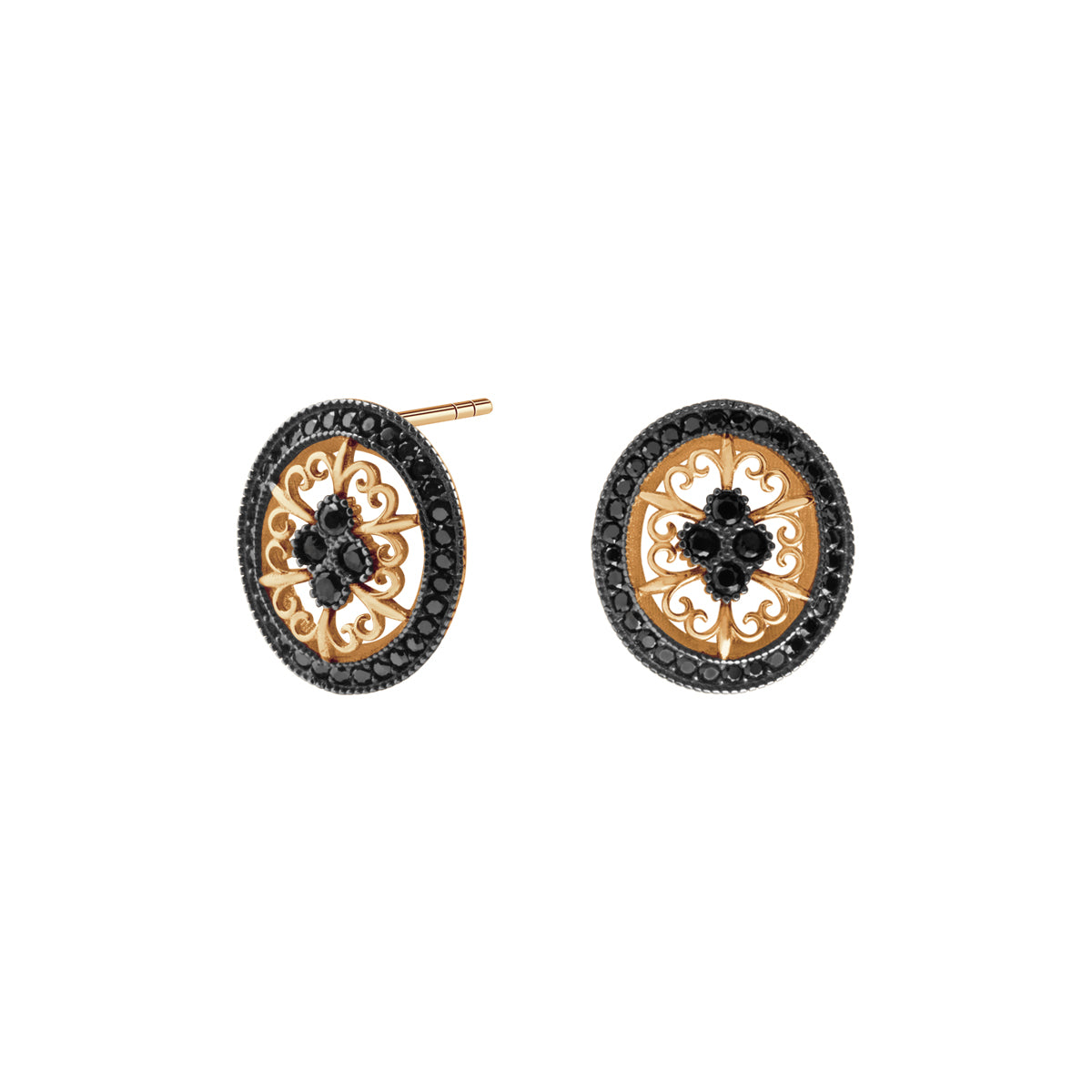Kolczyki ze złota próby 333 to kwintesencja elegancji. Subtelny, ażurowy wzór oraz owalny kształt sprawiają, że idealnie łączą klasykę z nowoczesnością. Głęboka czerń cyrkonii pięknie kontrastuje z lśniącym złotem, tworząc wyjątkowo stylową i harmonijną całość. Mocowanie do ucha sztyftem.