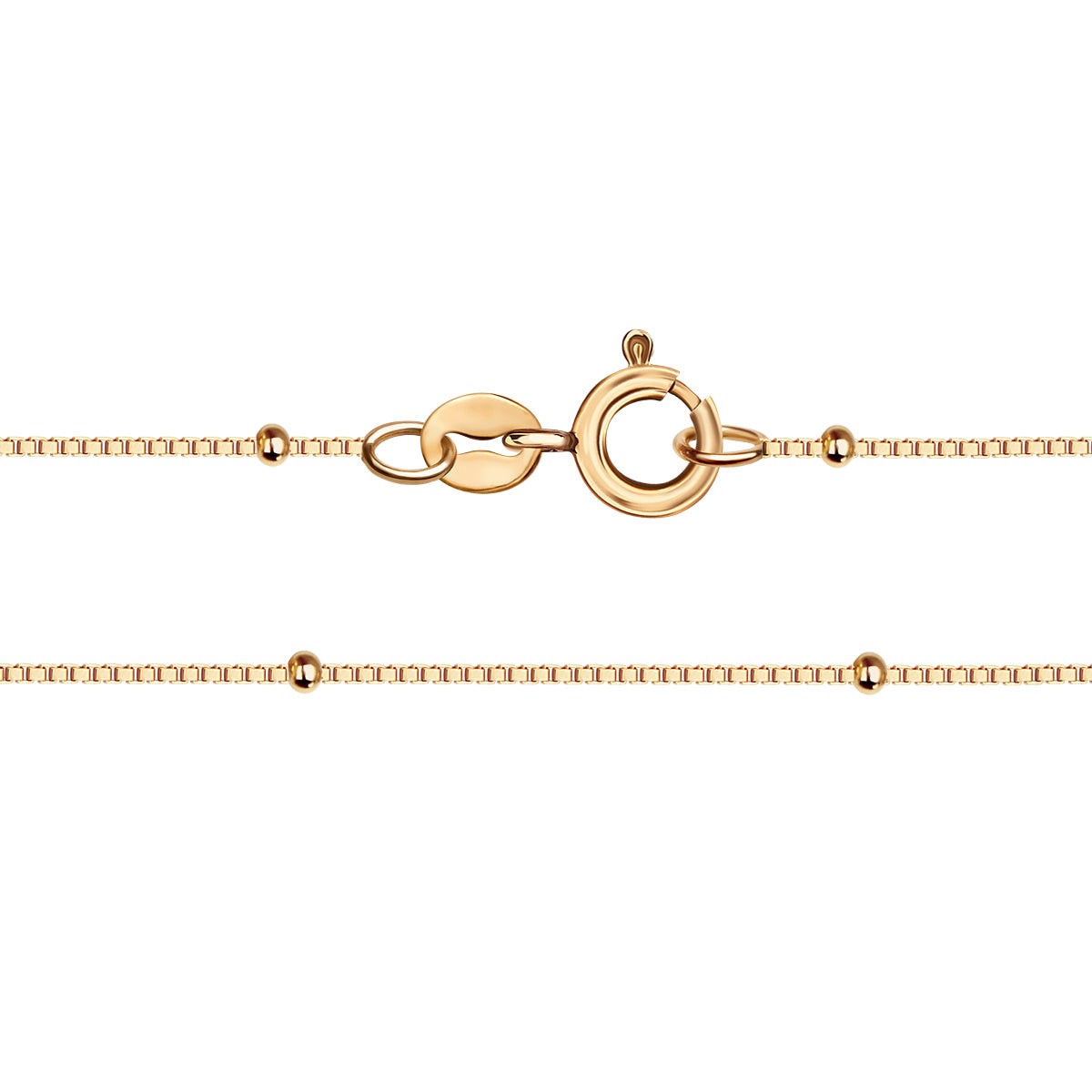 Łańcuszek o splocie typu kostka, wzbogacony regularnie rozmieszczonymi, lśniącymi kuleczkami. Wykonany ze złota próby 585, zachwyca szlifem, który pięknie odbija światło. To minimalistyczna biżuteria, która doskonale prezentuje się solo, jak i w duecie z drobną zawieszką. Nowoczesny akcent dla kobiet ceniących ponadczasową elegancję.