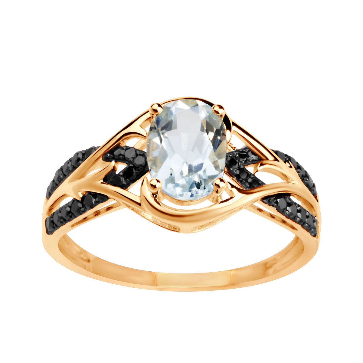 Złoty pierścionek z Topzem Błękitnym i czarnymi diamentami