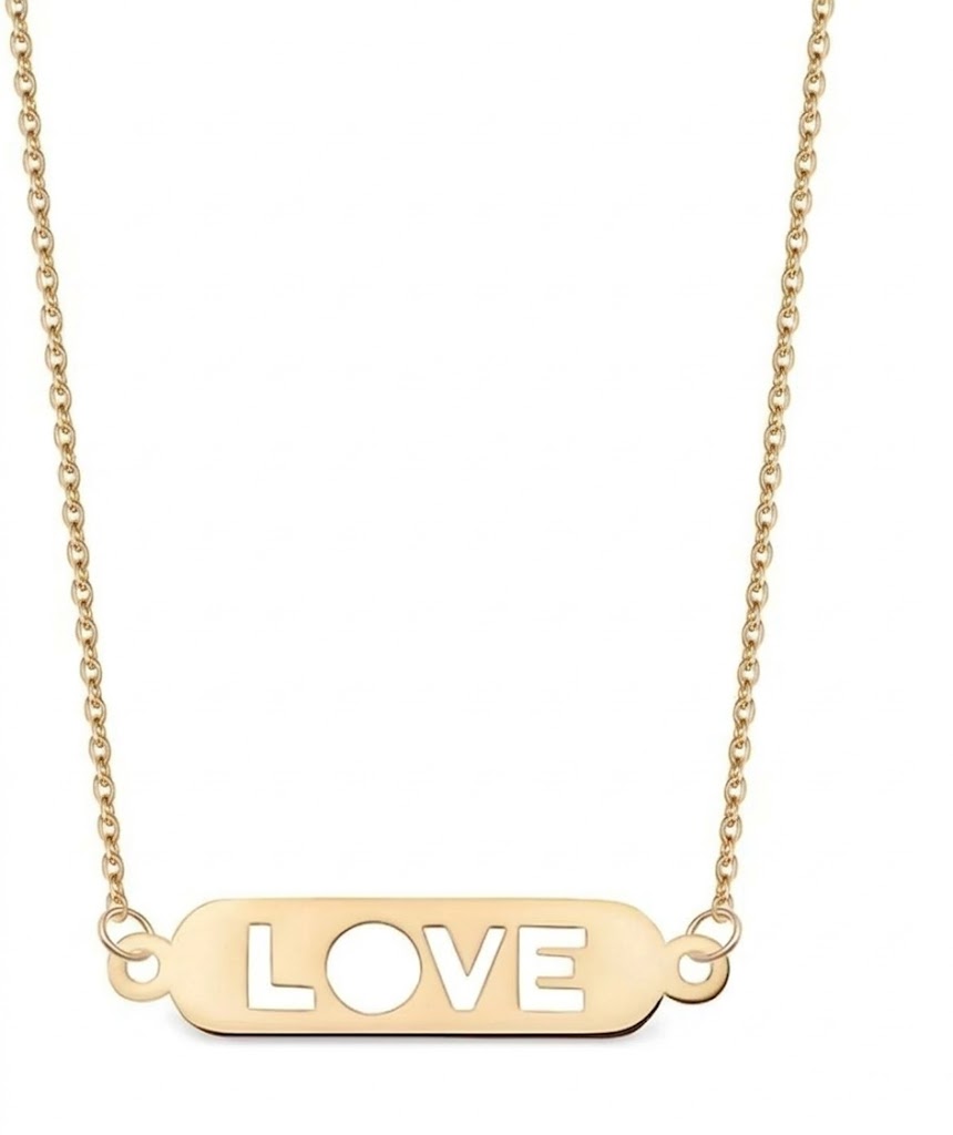 Naszyjnik wykonany ze złota próby 0,333. W łańcuszek o splocie ankier, szlifowany, wkomponowana złota blaszka z wyciętym napisem LOVE. Blaszka płaska, polerowana. Nowy wzór celebrytki.